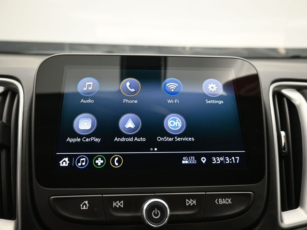 - Audio system, Chevrolet Infotainment 3 system, 8" diagonal color touchscreen, AM/FM stereo. Additional features for compatible phones include: Bluetooth® audio streaming for 2 active devices, voice command pass-through to phone, Apple CarPlay and Android Auto capable.
