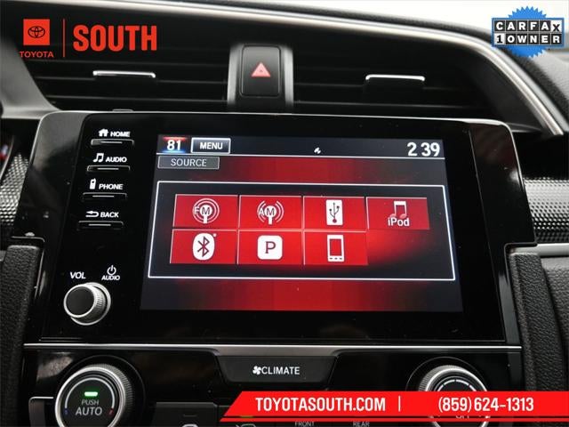 **APPLE CARPLAY**, **ANDROID AUTO**, Black w/Fabric Seating Surfaces, Apple CarPlay/Android Auto, Wheels: 18 Alloy w/Gloss Black Inserts, 4-Wheel Disc Brakes, 8 Speakers, ABS brakes, Adaptive Cruise Control: Adaptive Cruise Control (ACC) with Low-Speed Follow, Air Conditioning, Alloy wheels, AM/FM radio, Auto High-beam Headlights, Automatic temperature control, Brake assist, Bumpers: body-color, Cloth Seat Trim, Delay-off headlights, Driver door bin, Driver vanity mirror, Dual front impact airbags, Dual front side impact airbags, Electronic Stability Control, Emergency communication system: HondaLink, Exterior Parking Camera Rear, Forward collision: Collision Mitigation Braking System (CMBS) + FCW mitigation, Four wheel independent suspension, Front anti-roll bar, Front Bucket Seats, Front Center Armrest, Front fog lights, Front reading lights, Fully automatic headlights, Illuminated entry, Lane departure: Lane Keeping Assist System (LKAS) active, Leather Shift Knob, Low tire pressure warning, Occupant sensing airbag, Outside temperature display, Overhead airbag, Panic alarm, Passenger door bin, Passenger vanity mirror, Power door mirrors, Power steering, Power windows, Radio data system, Radio: 180-Watt AM/FM Audio System, Rear anti-roll bar, Rear window defroster, Remote keyless entry, Security system, Speed control, Speed-sensing steering, Split folding rear seat, Spoiler, Steering wheel mounted audio controls, Tachometer, Telescoping steering wheel, Tilt steering wheel, Traction control, Trip computer, **BACK UP CAMERA**, **LOCAL TRADE**, **Bluetooth®**, **CARFAX ONE OWNER**, **CLEAN CARFAX, NO ACCIDENTS**, Black w/Fabric Seating Surfaces, Apple CarPlay/Android Auto, Wheels: 18 Alloy w/Gloss Black Inserts.