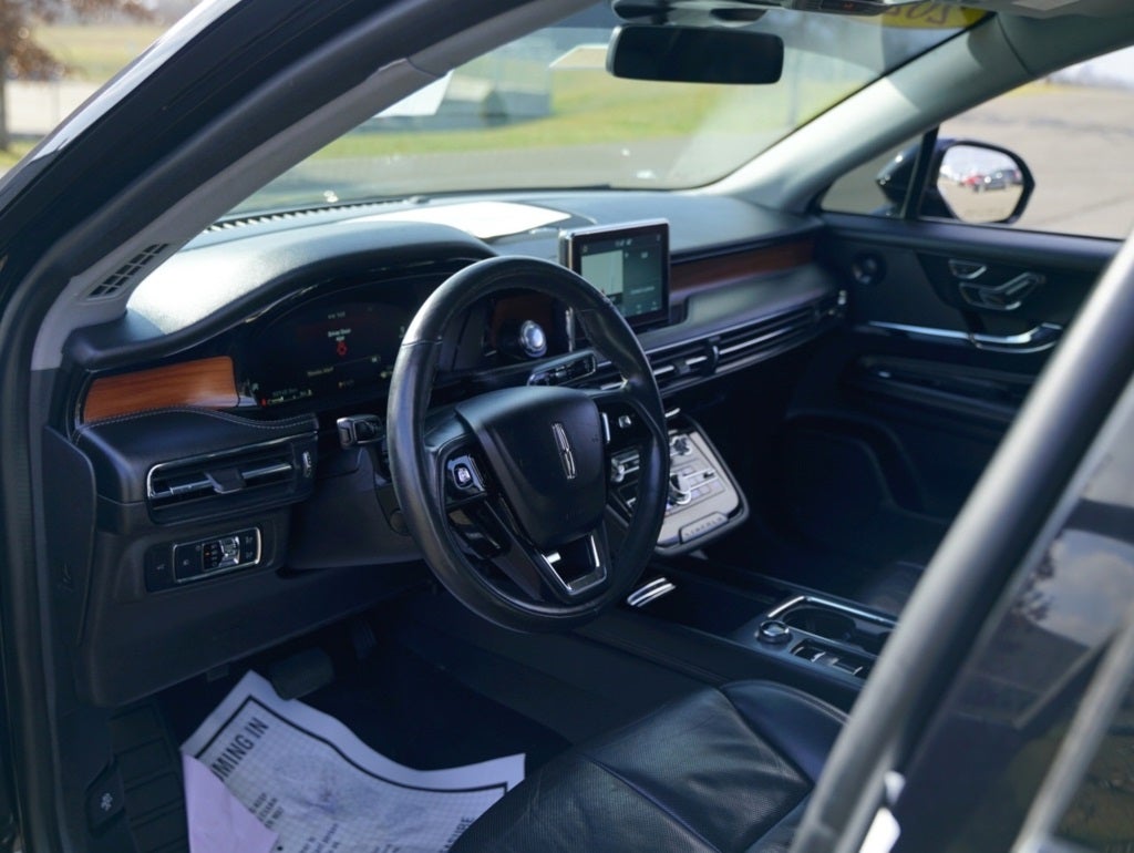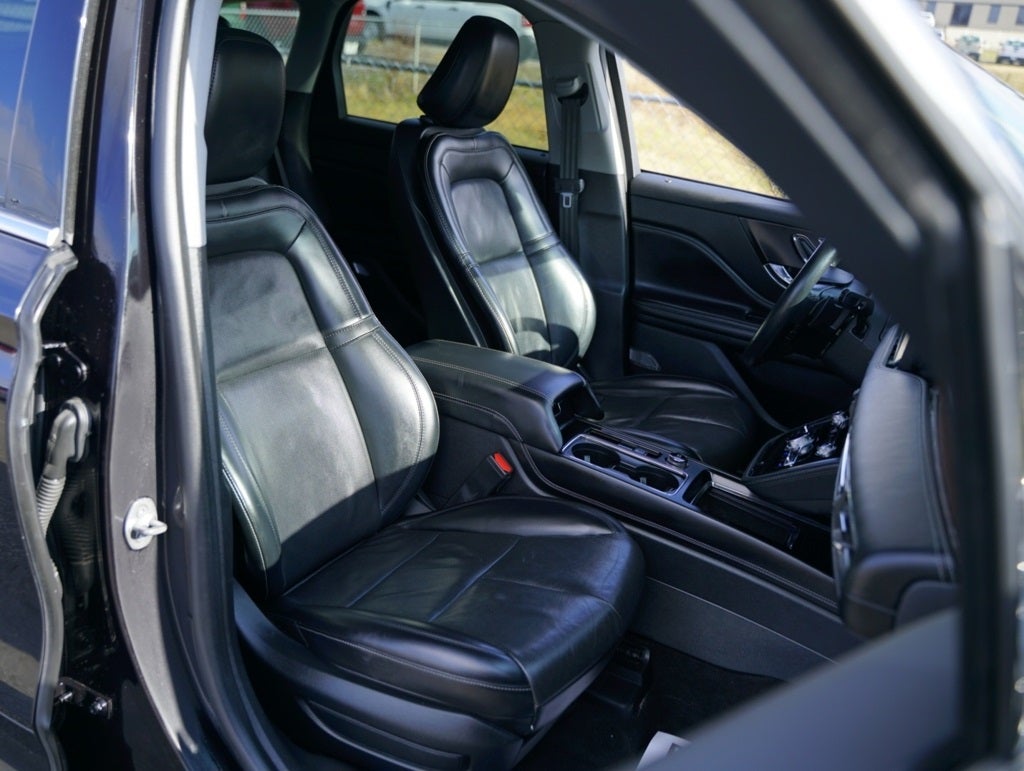 Black 2021 Lincoln Corsair Reserve AWD 8-Speed Automatic 2.0L I4 14 Speakers, 19 Bright Machined Aluminum Wheels, 3.81 Axle Ratio, 4-Wheel Disc Brakes, ABS brakes, Air Conditioning, Alloy wheels, AM/FM radio: SiriusXM, Auto High-beam Headlights, Auto tilt-away steering wheel, Auto-dimming door mirrors, Auto-dimming Rear-View mirror, Automatic temperature control, Brake assist, Bumpers: body-color, Compass, Delay-off headlights, Driver door bin, Driver vanity mirror, Dual front impact airbags, Dual front side impact airbags, Electronic Stability Control, Emergency communication system, Four wheel independent suspension, Front anti-roll bar, Front Bucket Seats, Front Center Armrest, Front dual zone A/C, Front fog lights, Front reading lights, Fully automatic headlights, Garage door transmitter: HomeLink, Heated door mirrors, Heated front seats, Illuminated entry, Knee airbag, Leather steering wheel, Low tire pressure warning, Memory seat, Navigation System, Occupant sensing airbag, Outside temperature display, Overhead airbag, Overhead console, Panic alarm, Passenger door bin, Passenger vanity mirror, Power door mirrors, Power driver seat, Power Liftgate, Power moonroof: Panoramic Vista Roof, Power passenger seat, Power steering, Power windows, Premium Leather Heated Comfort Seats, Radio data system, Radio: Revel Audio System w/HD Radio & MP3, Rear anti-roll bar, Rear reading lights, Rear seat center armrest, Rear window defroster, Rear window wiper, Remote keyless entry, Security system, SiriusXM Radio, Speed control, Speed-sensing steering, Speed-Sensitive Wipers, Split folding rear seat, Spoiler, Steering wheel memory, Steering wheel mounted A/C controls, Steering wheel mounted audio controls, SYNC 3 Communications & Entertainment System, Tachometer, Telescoping steering wheel, Tilt steering wheel, Traction control, Trip computer, Turn signal indicator mirrors, Variably intermittent wipers.